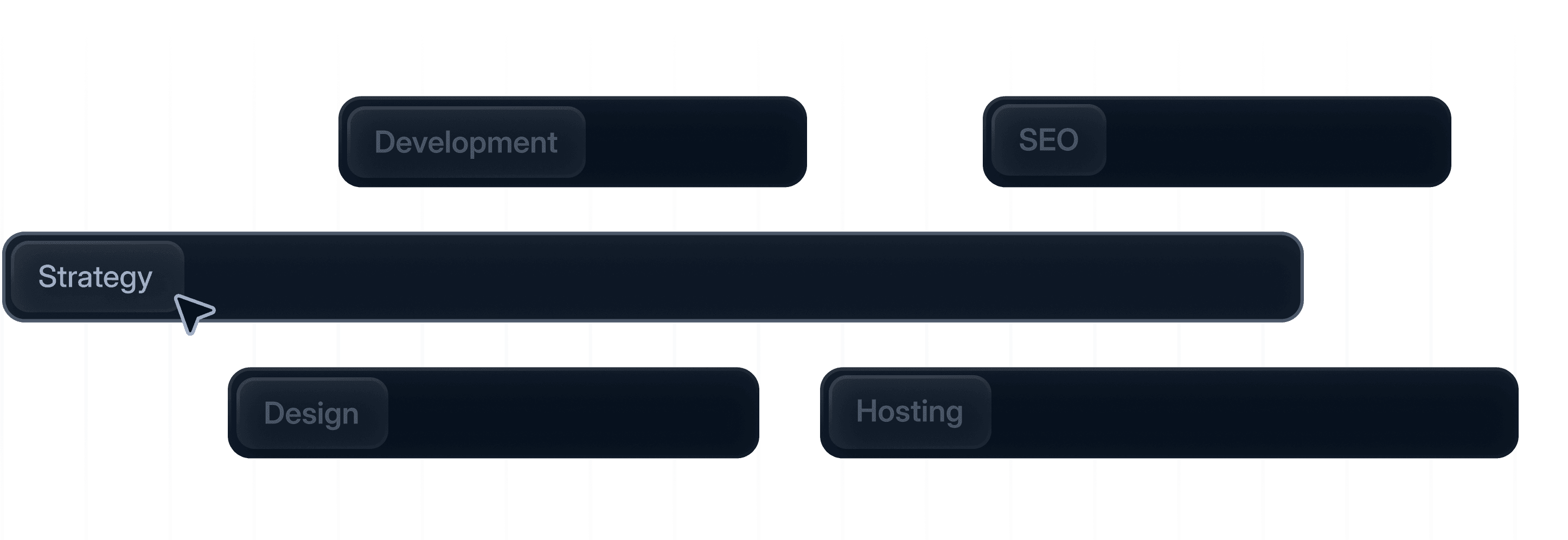 Strategie · Design · Development · Hosting · SEO — Ein Team, ein Ablauf.