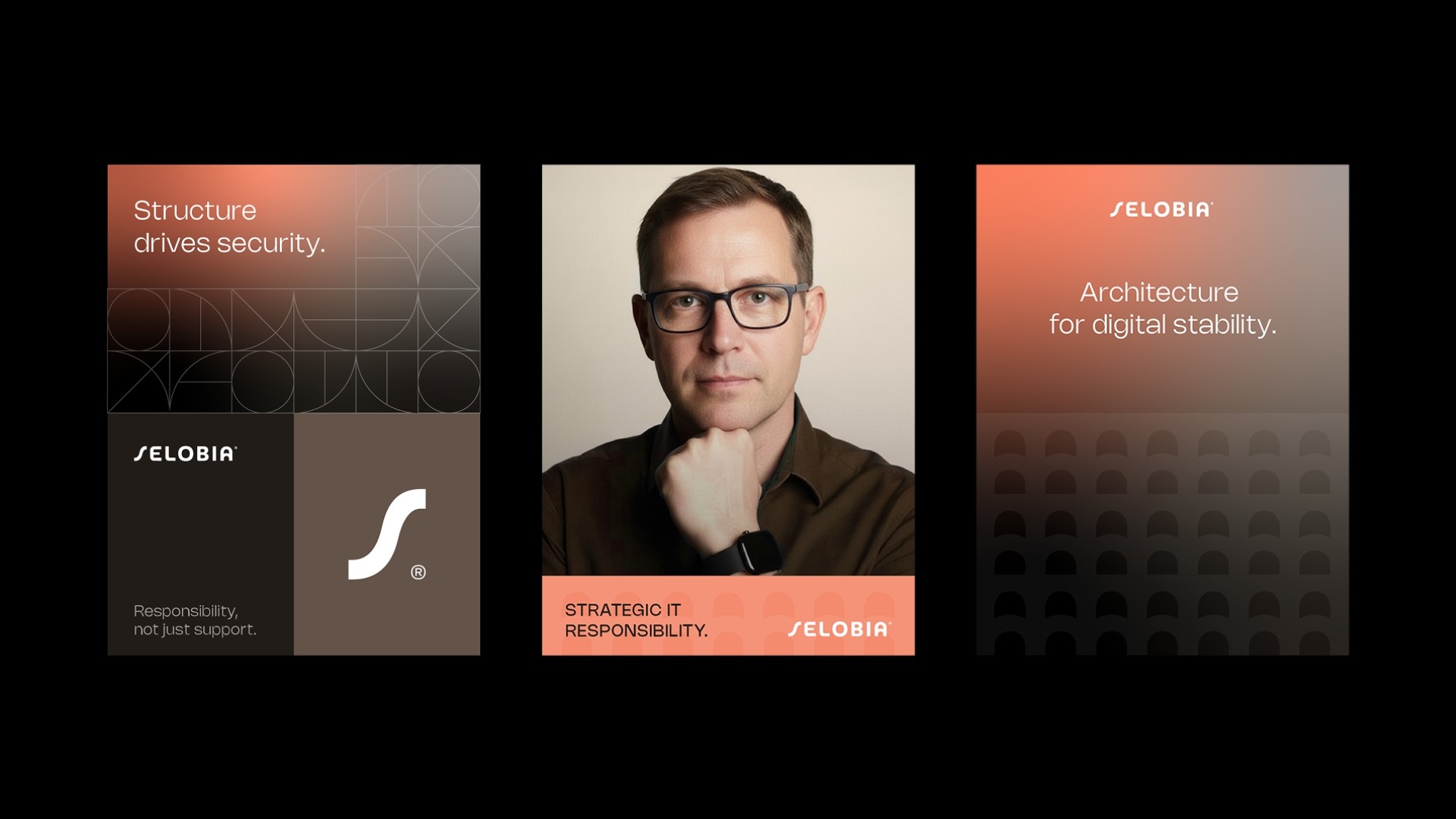 Was entstand, ist eine Corporate Identity, die den Kern von Selobias Arbeit sichtbar macht: unsichtbare Architektur, die den Betrieb am Laufen hält. Das Farbsystem aus Tiefschwarz, Erdtönen und dem charakteristischen Orange-Gradienten gibt der Marke Wärme und Energie — ohne die rationale Strenge zu brechen. Selobia kommuniziert ab sofort auf Augenhöhe mit Unternehmen, die wissen, was gute IT-Infrastruktur wert ist.