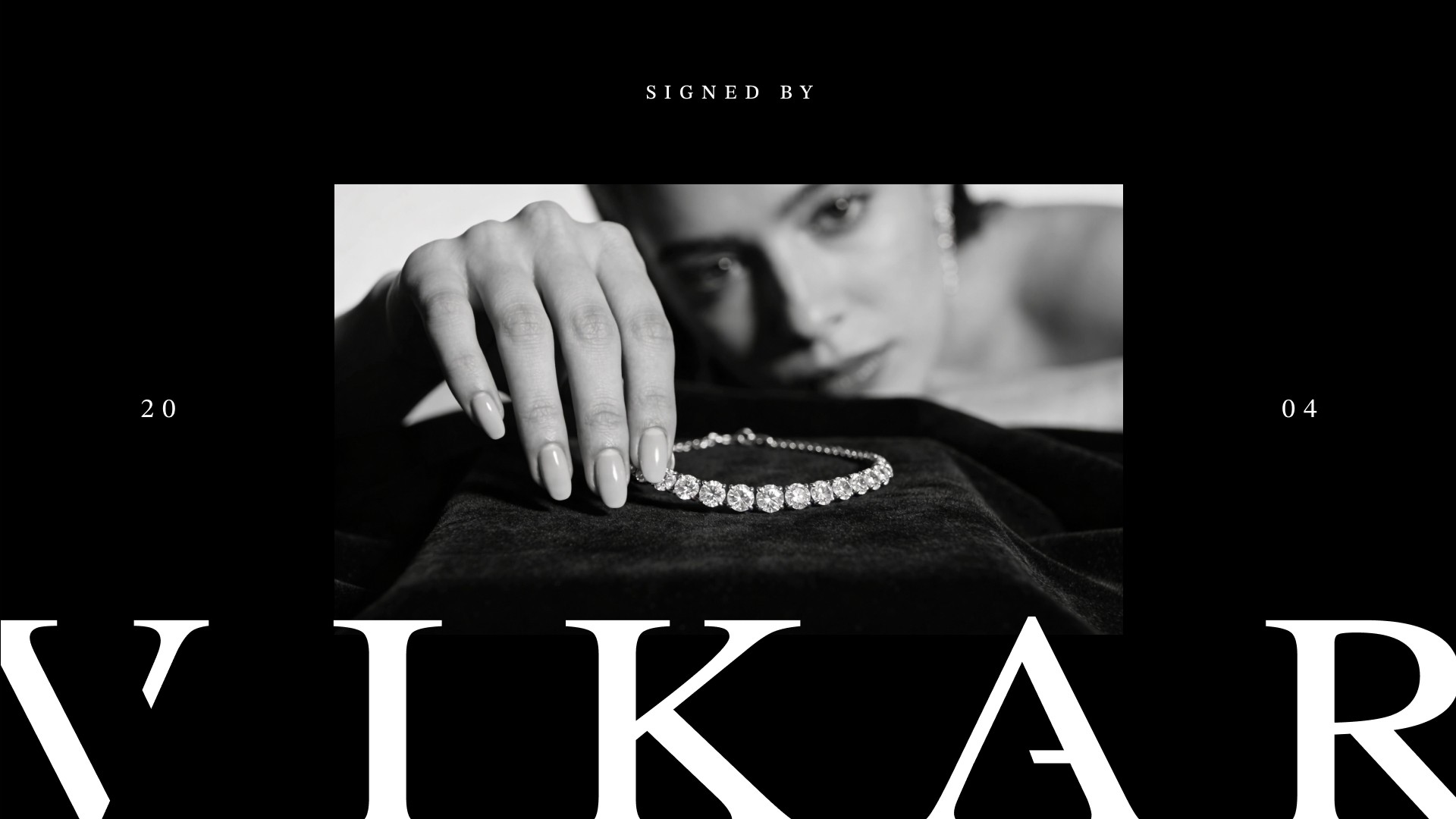 Das Ergebnis ist eine Identität, die Vikar Ahmed genau dort positioniert, wo die Marke hingehört: zwischen den großen Häusern und dem Handwerk, das wirklich zählt. Schwarz, Metallgrau und Weiß schaffen eine Bildsprache ohne Ablenkung — alle Aufmerksamkeit gilt dem Schmuck und den Momenten, die er begleitet. Eine Marke, die nicht erklärt, sondern überzeugt.