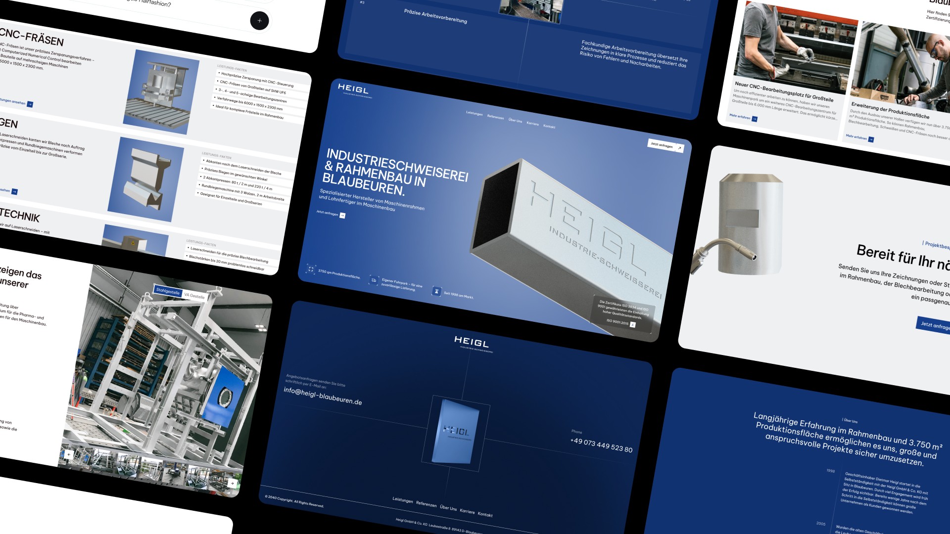 Heigl Blaubeuren – Webdesign & Webflow Development Für die Heigl GmbH & Co. KG haben wir den kompletten Webauftritt neu gedacht – mit dem Ziel, die handwerkliche Präzision und die industrielle Leistungsfähigkeit des Unternehmens auch digital erlebbar zu machen. Entstanden ist ein ausdrucksstarkes, klares Design in Figma, das Seriosität und Modernität verbindet und gleichzeitig die wichtigsten Inhalte schnell zugänglich macht. Im Anschluss wurde das Konzept in Webflow umgesetzt: performant, responsiv und sauber strukturiert, damit Leistungen wie Schweißen, CNC-Fräsen, Biegen und Lasertechnik sowie Themen wie Zertifizierungen (ISO 9001 / ISO 3834), Fertigungstiefe, Referenzen und Karriere übersichtlich präsentiert werden. Der neue Auftritt wirkt deutlich hochwertiger, stärkt Vertrauen bei Bestandskunden und macht es neuen Anfragen leichter, sofort die relevanten Informationen zu finden.