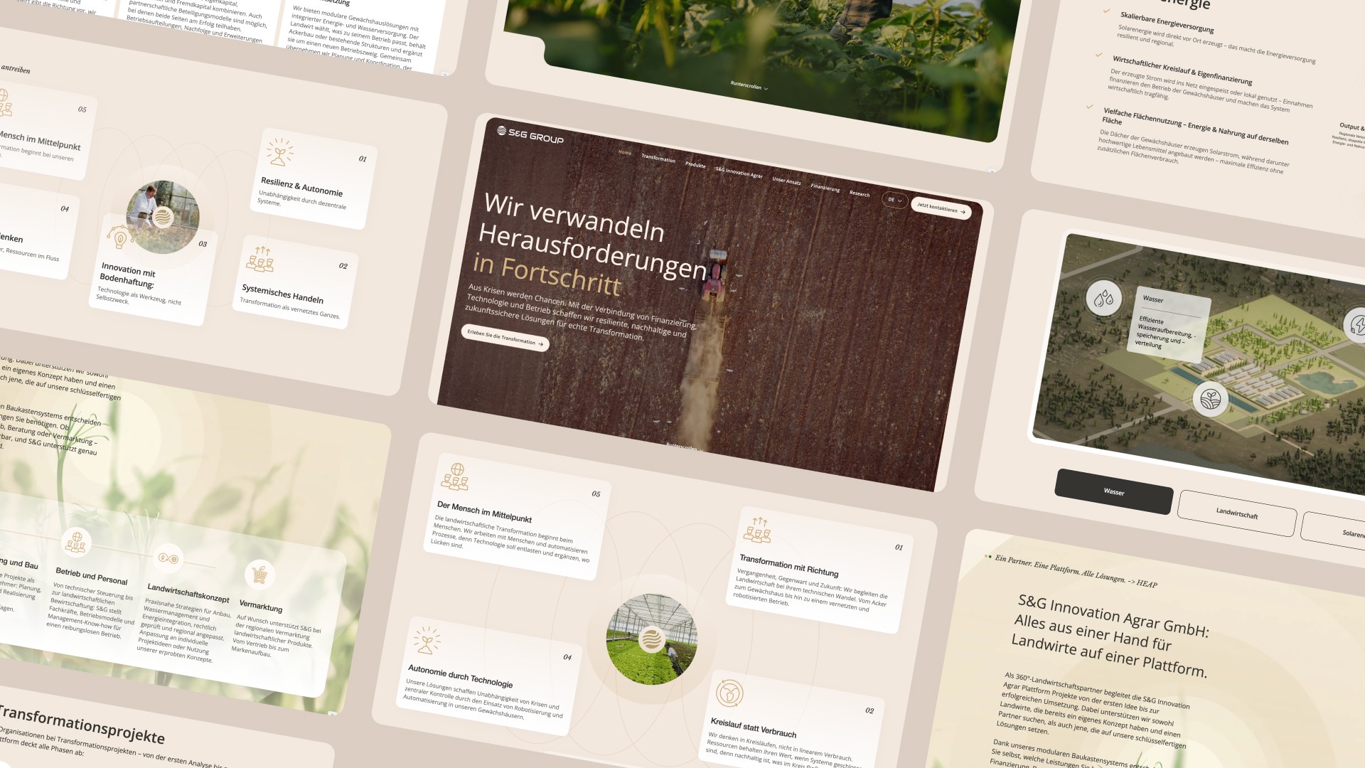 Für die SUG Group entwickelten wir einen neuen Webauftritt, der die komplexe strategische Ausrichtung des Unternehmens visuell und inhaltlich klar transportiert. Die SUG Group versteht sich als Plattform für Transformation, die Finanzierung, Technologie und operative Umsetzung zusammenbringt, um resiliente, nachhaltige Lösungen zu realisieren – insbesondere in den Bereichen Wasser, Landwirtschaft und Technologie. Das Webdesign wurde so konzipiert, dass die vielseitigen Leistungen, Werte und Visionen der Marke strukturiert, verständlich und glaubwürdig dargestellt werden. Ziel war es, eine digitale Plattform zu schaffen, die sowohl Komplexität reduziert als auch Tiefe, Verbindung und Ganzheitlichkeit sichtbar macht, ohne dabei an modernem, professionellem Look & Feel einzubüßen.